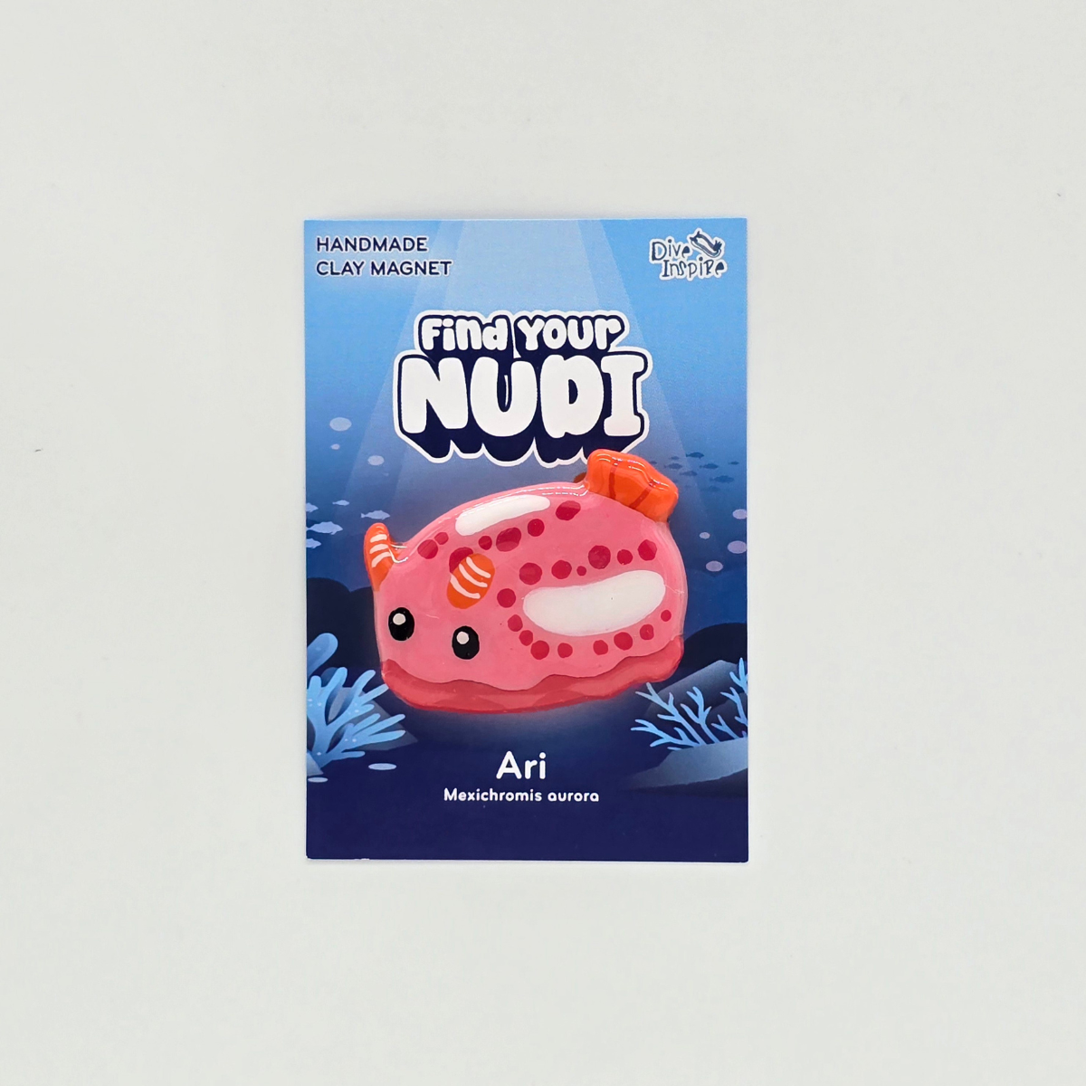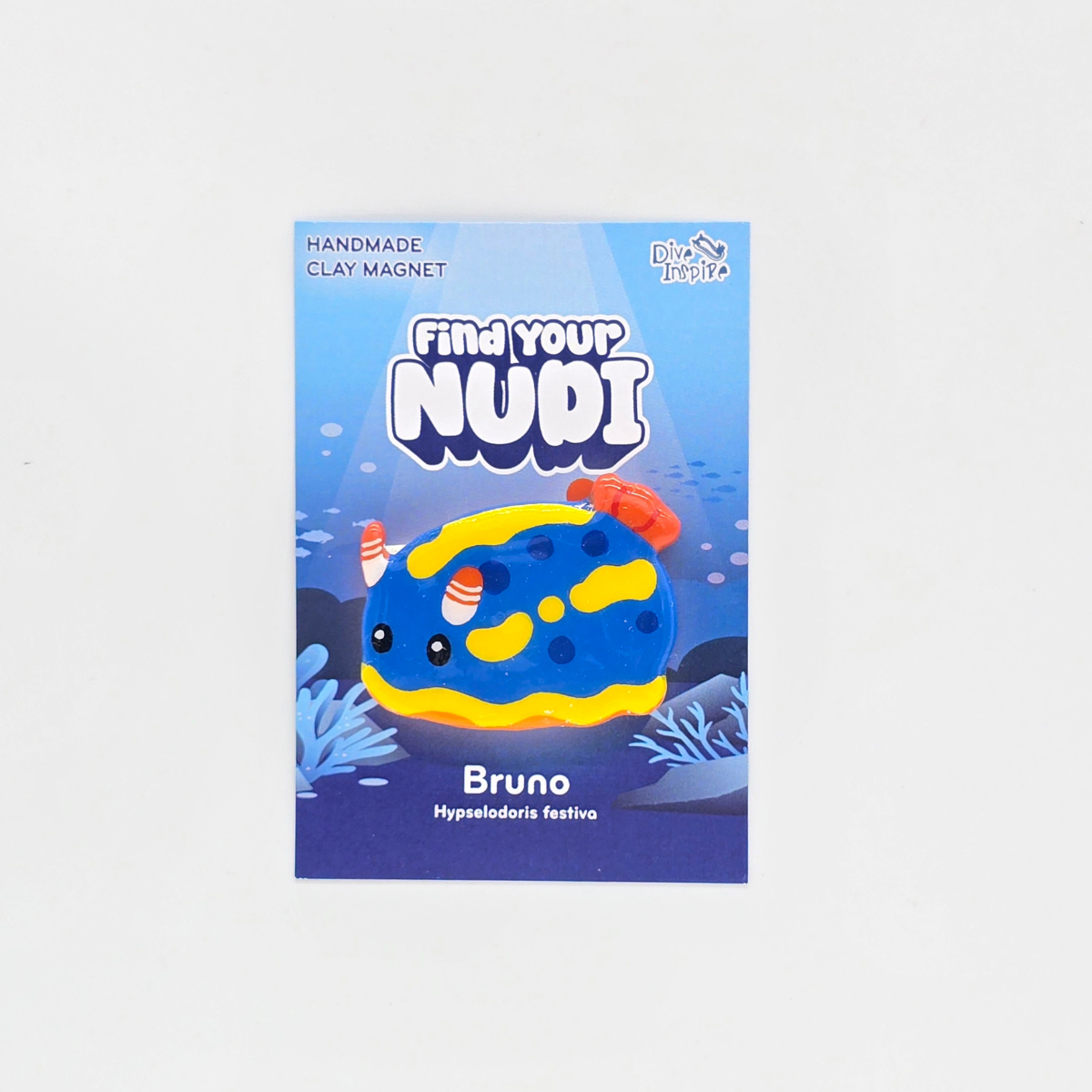 Bring a splash of ocean whimsy to your fridge, office, or dive locker with this handmade nudibranch magnet! Each cute sea slug is sculpted by hand from air-dry clay, painted with care, and finished with a strong magnet on the back — perfect for holding up notes, photos, or dive memories.